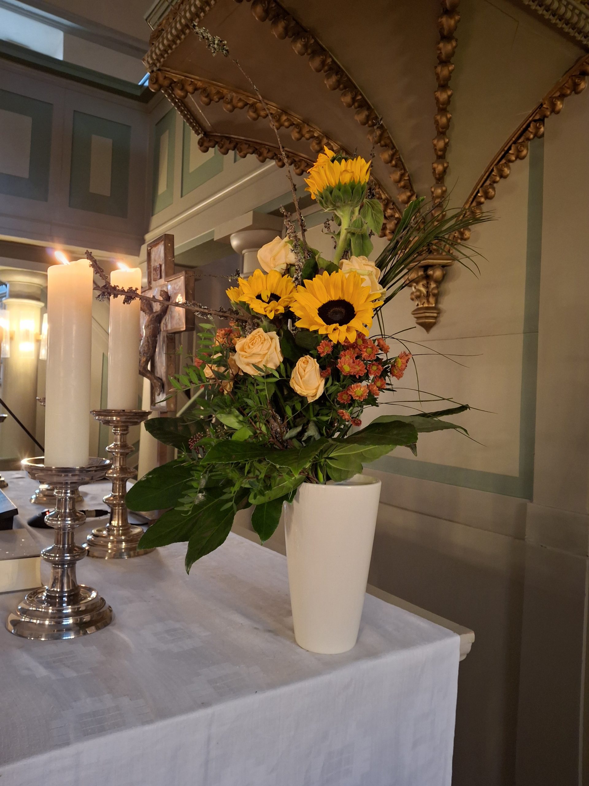 Auftanken können wir auch, wenn wir den Blick auf dem hübschen Strauß auf dem Altar ruhen lassen.